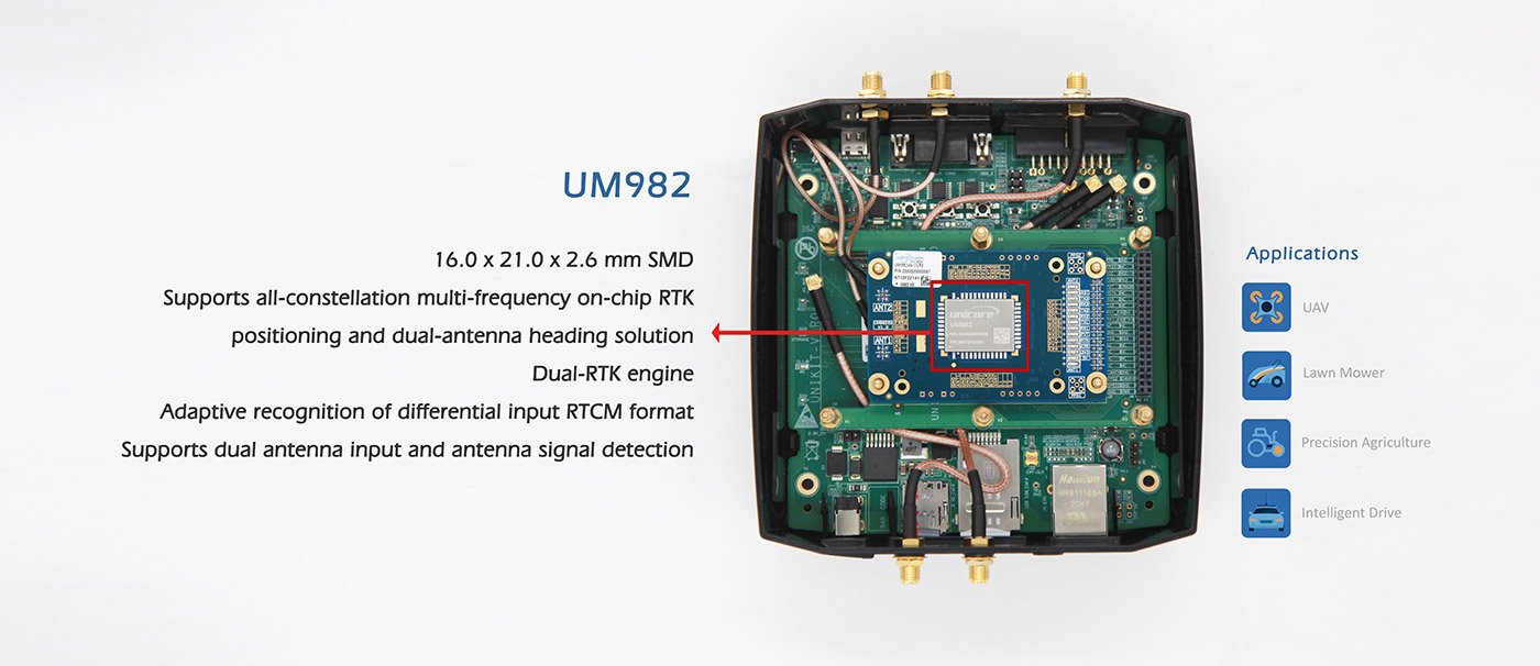 | 定位模組 | UM982 | 內(nèi)置真點(diǎn)高精度數(shù)據(jù)服務(wù) |