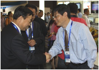 和芯星通CEO/總裁韓紹偉與與總參測繪局局長袁樹友親切交談: